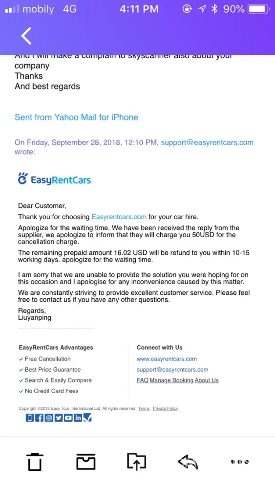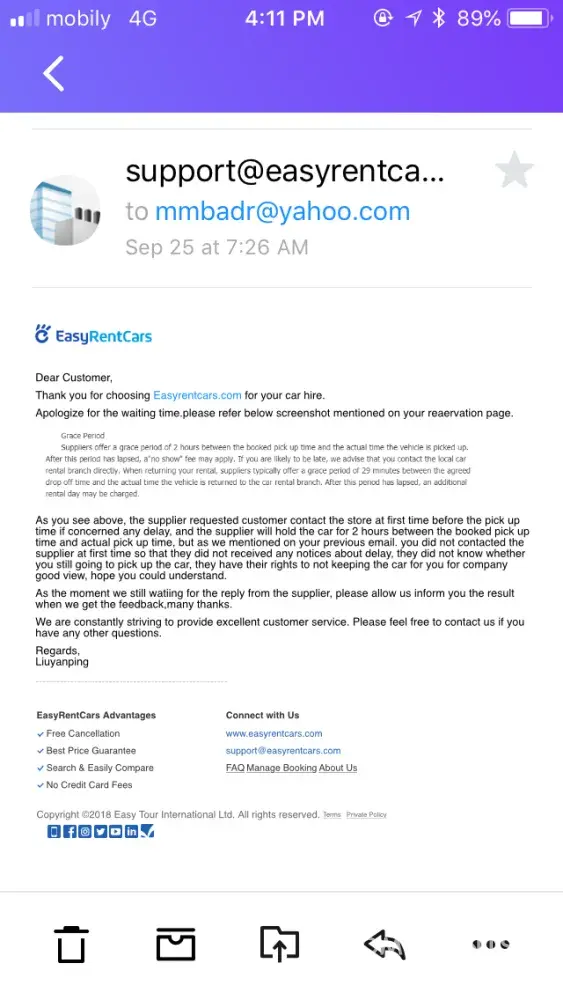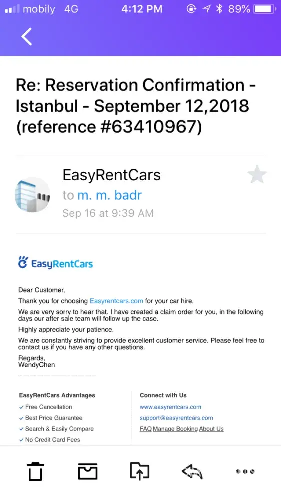 The next day I went to easyrent car office in Istanbul the customer service in charge there call Dany