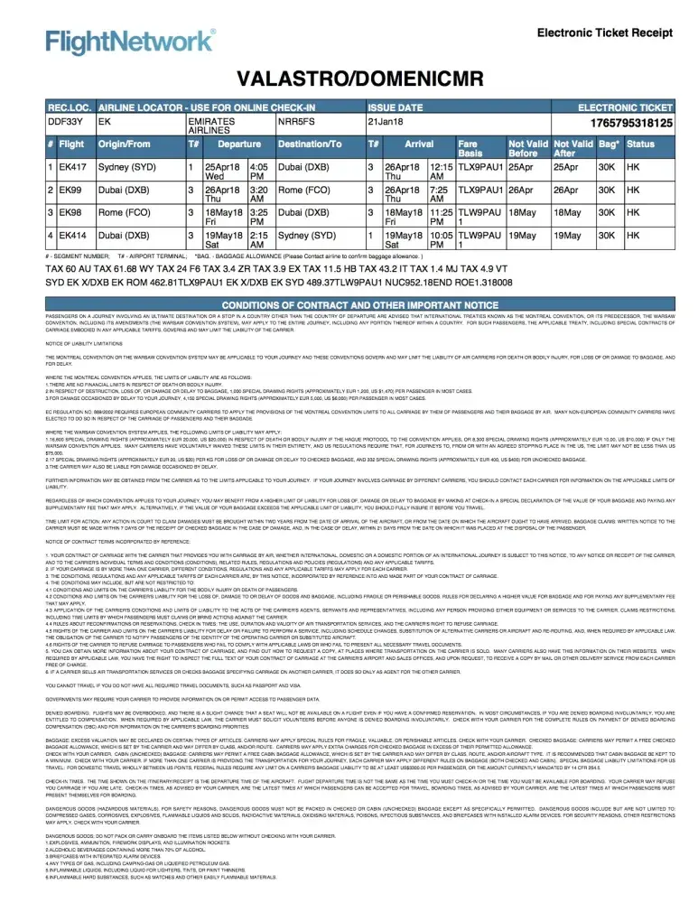 qatar airlines tickets which was purchased through travel trolley