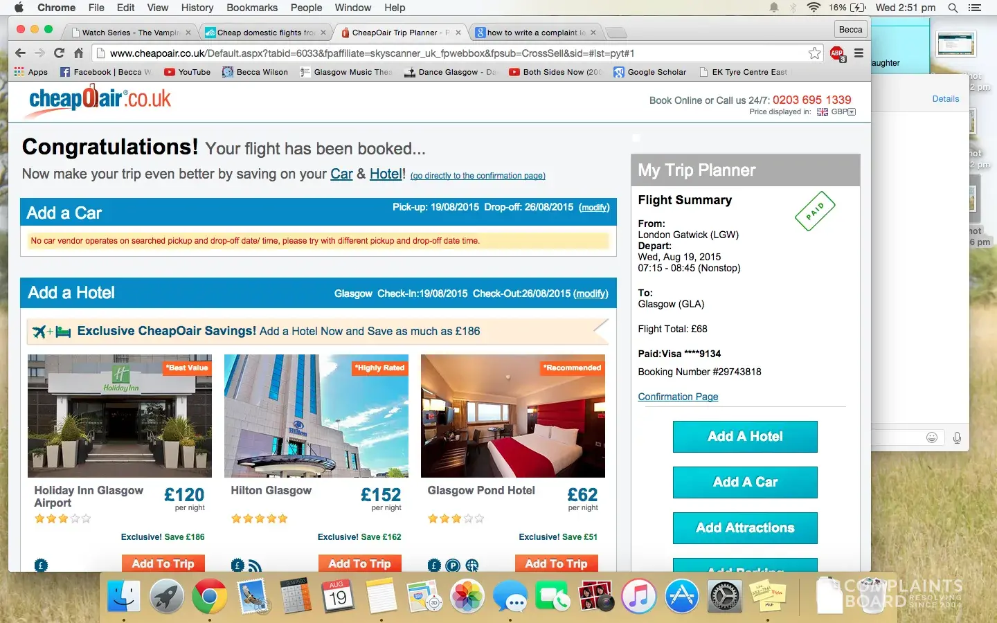 This whole experience has left a bitter taste in my mouth and I would be reluctant to use sky scanner again.