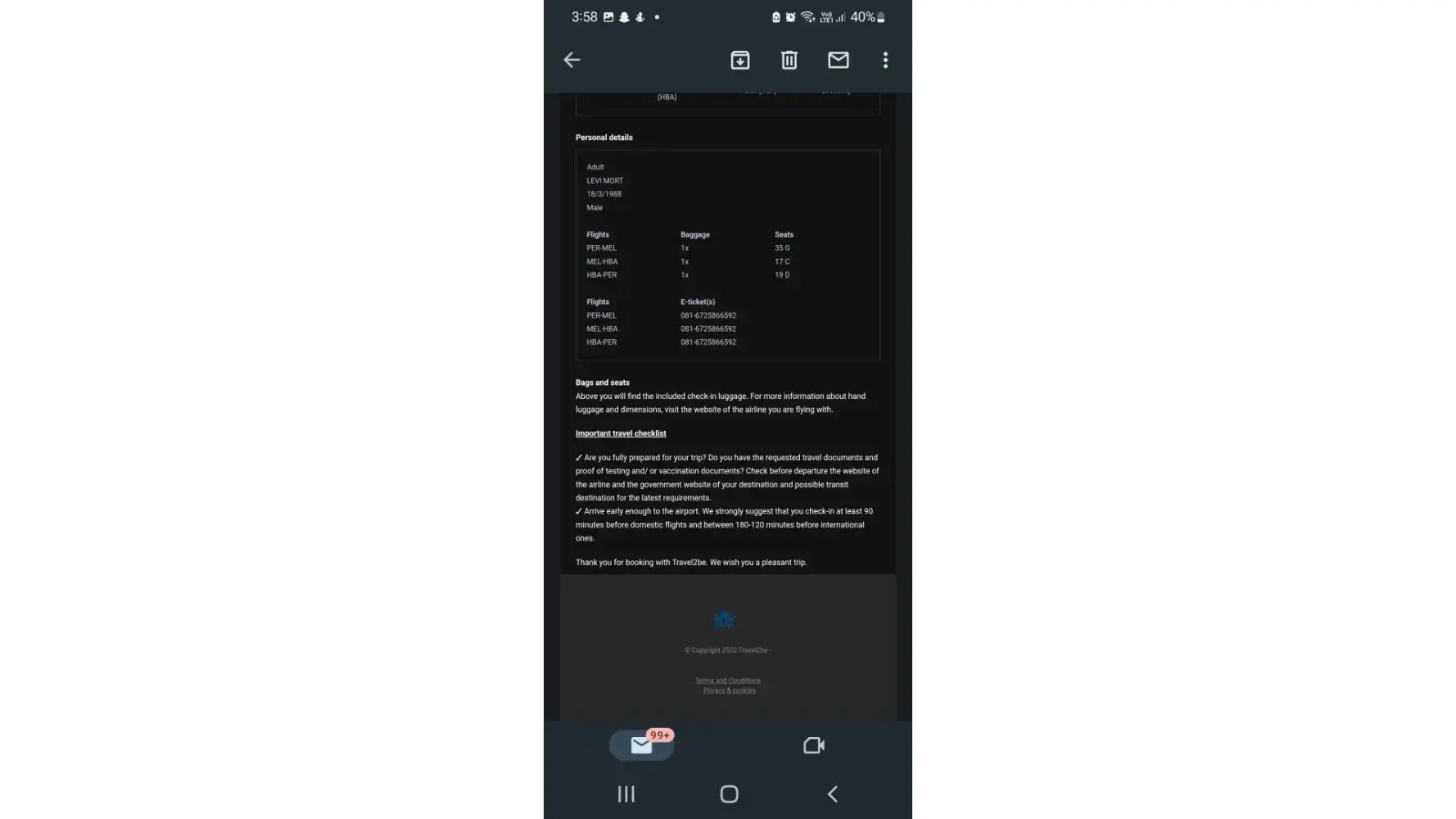 My booking ID - SKYAU - 0268403
