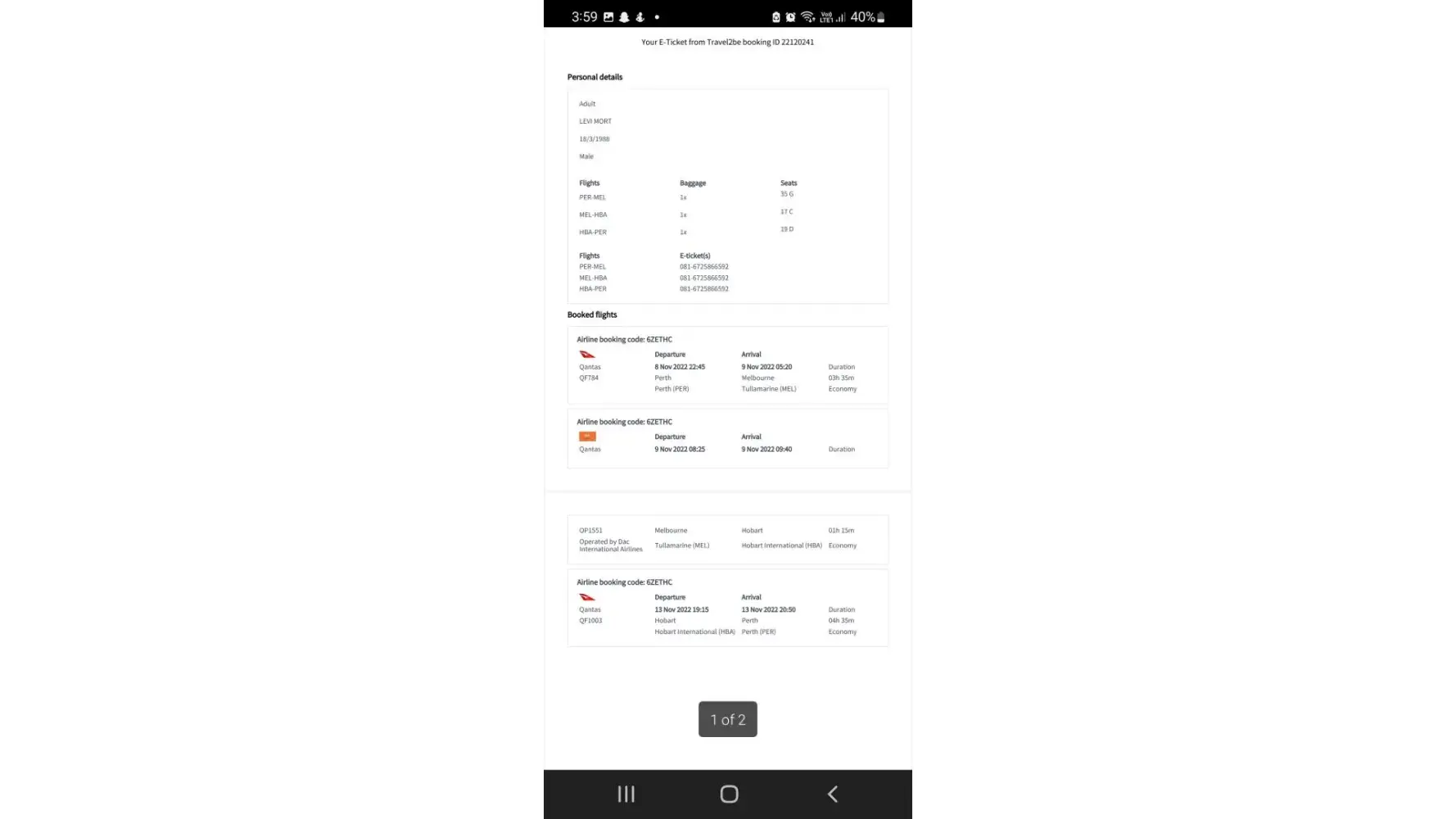 The ticket I booked with Skyscanner