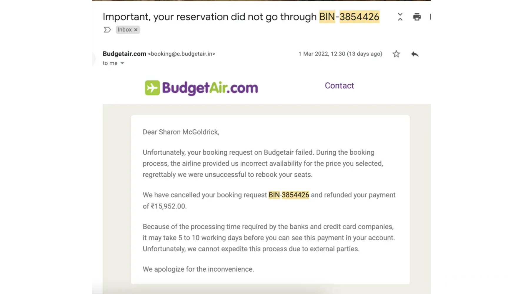 Important, your reservation did not go through BIN-3854426