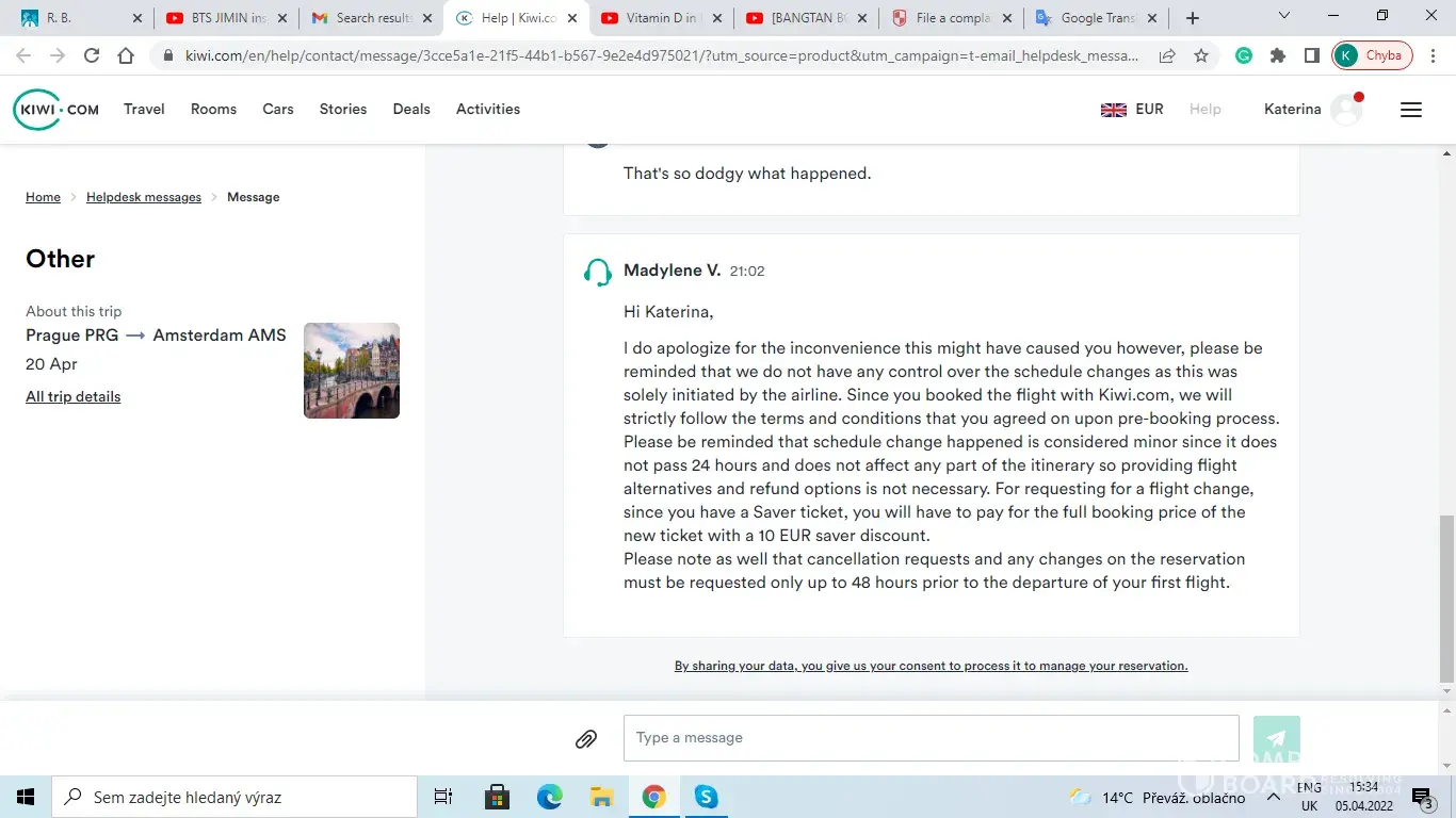 I am furious over the fact that I booked my flight through Skyscanner using Kiwi.com.