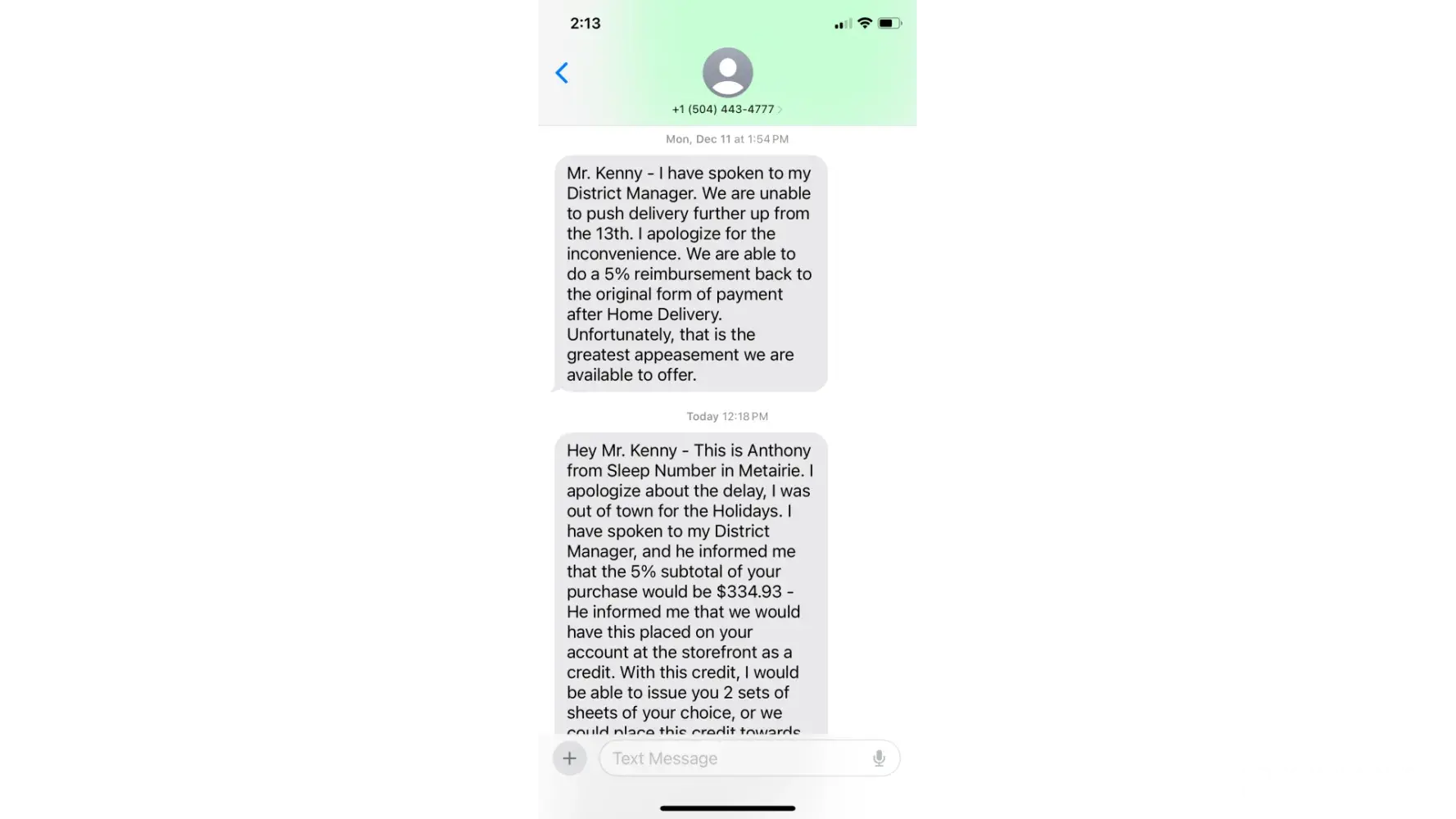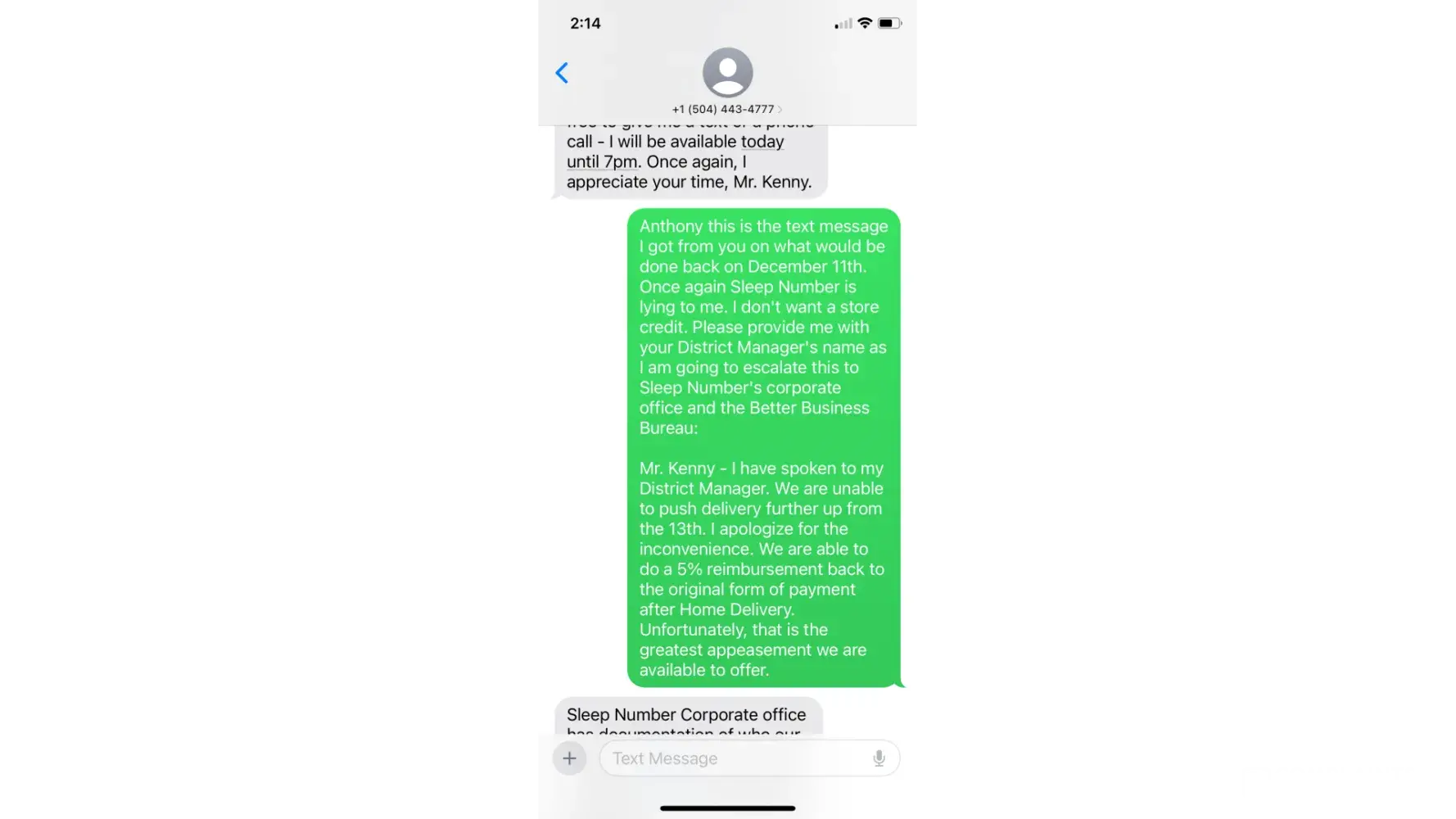Desired outcome: payment for my missed hours since Sleep number was unwilling to work with me on delivery.