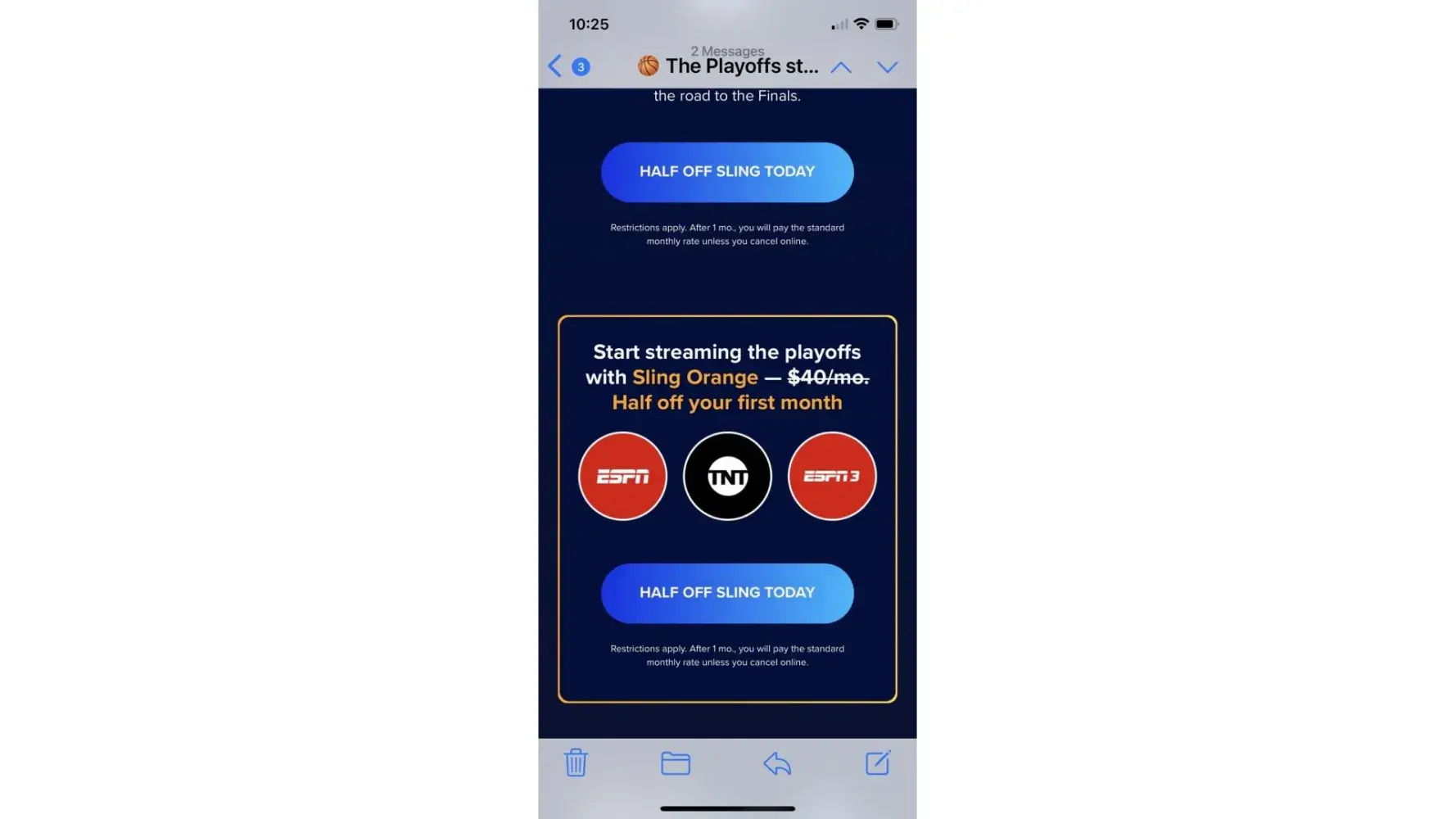 I received half off offer of Sling Orange and was charged for Orange & Blue for $55. I want refunded or credited for the intended $20 Sling orange offer please. Waited 35 mins on chat to talk to someone who did not resolve or help. I have copy of transcript. Will dispute credit card charge and willing to take this a whole other level. My cancellation was exactly 1 minute after my "resubscribe".in which my previous subscription was reactivated for $55. They will not honor the email. Which is good for new and previous customers.