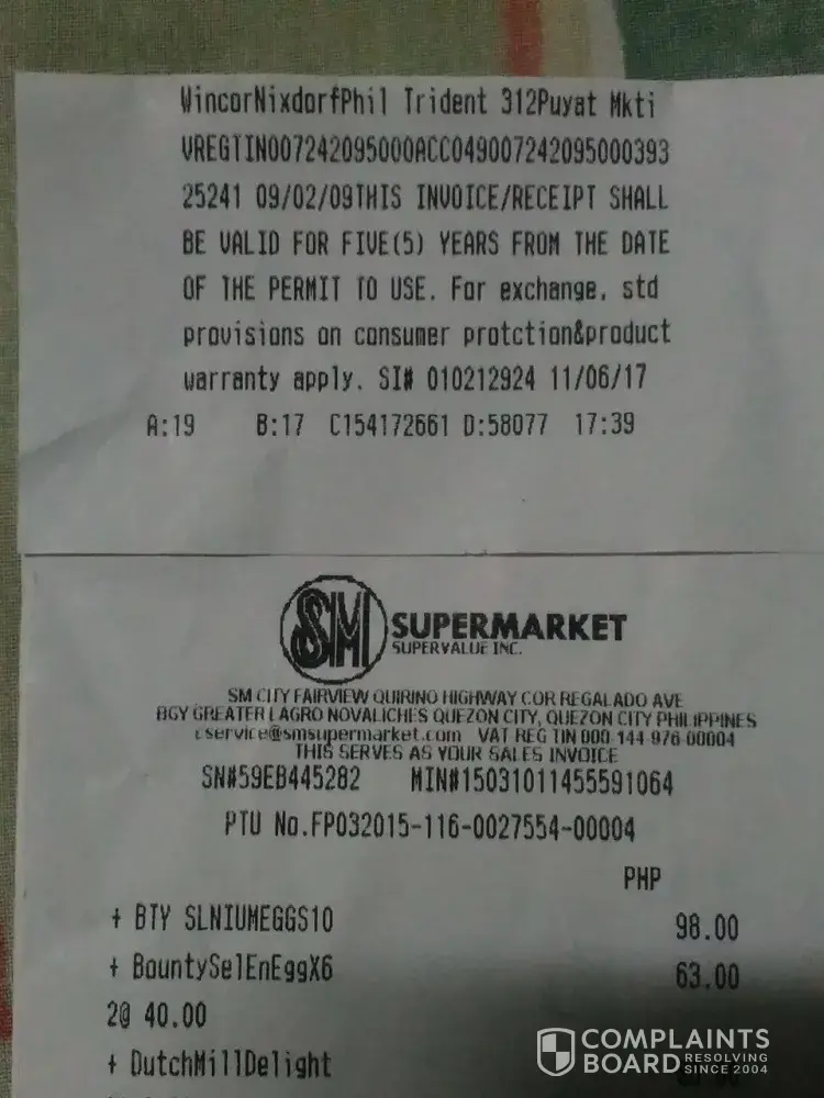 I would like to express my resentment regarding to service delivered to me on this day June 11, 2017 around 5:30 pm in SM Fairview - Supermarket.