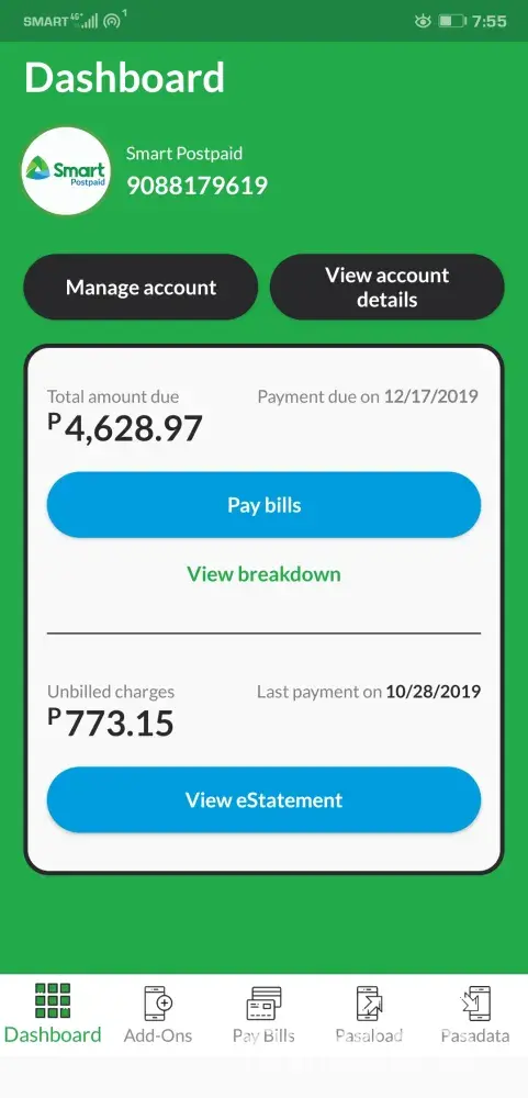 They keep on charging me for data usage. Mysmart application and MyPldtSmart app is not working, means I can't see my packages availed in my plan. This started happen when I changed my number because before I used to check all my usage on the MySmart app, now nothing is there. Last bill I got charge to 2, 300PHP plus for data usage which I have no idea since I did not get any notification and I always call there hotline which they keep on telling me also that I am still on track. The hotline service as well is not credible at all. I called them so many times since last month to find a resolution about my bill and the 5th agent already whom I talked to which they just keep on telling me someone will callback to fix the issue which never happened. Now when my package was replenished, I finally received a notification about my data usage that has already consumed all from Nov 25 up to Dec 7 only. (just that coverage/days, this is the first time happened ever in my several months with them, I know my data limit and my usage also never consumed all from its limit. I even have wifi at home). So I got the notice even I can't believe I used it up already so I just availed there package I bought a package of GigaSurf99 just to lessen my worry about my current problem with them. Now I keep on checking since I still didn't get any notice about my data in mySmart app (it seems that bought package shows up there but not my plan inclusions) which shows that I still have 1, 500MB left and 300MB for others which expired on Dec 14. Then when I checked myPldtSmart I already got 700PHPplus unbilled usage. This is getting crazy. I want this complaint raised. I called them so many times but nothings happening and my bill is getting higher.