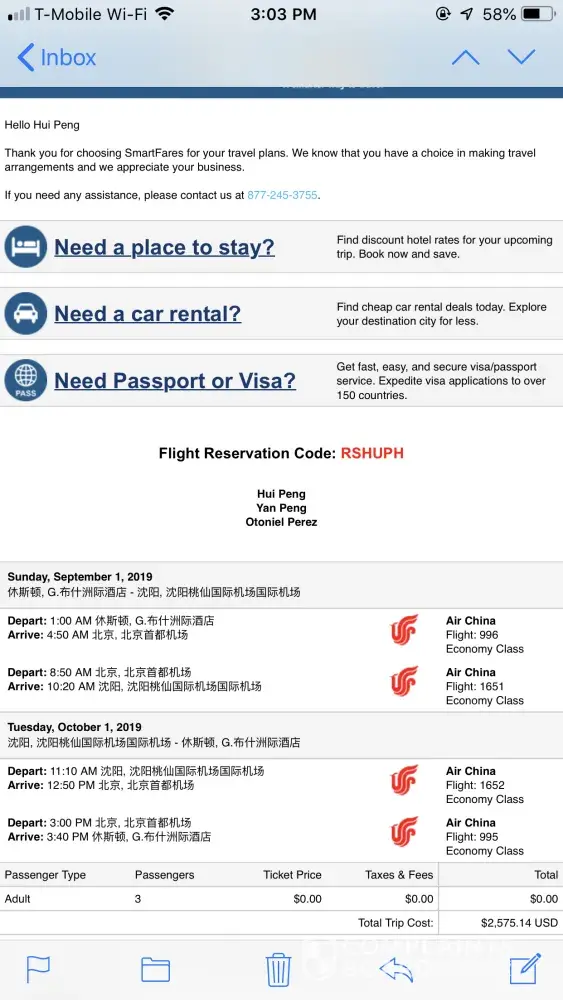 Booked three air tickets from their website smartfares.com on 04/23/2019, but the flight what I booked was cancelled, I'm asking full refund on 06/18/2018, and I was told I would get my refund in 20-25 business days. I called them again after one month and I was told I have to wait up to two billing cycles! Called again after two months and I was told I have to wait other two weeks! Called again and was told I have to wait another 3 to 4 business days! Called today and was told I have to wait 7-10 business days! It takes almost three months but I still haven't received my refund! I asked them it's not my fault but why so difficult to get my refund! They told me they can not refund me because airline haven't refund them! I called air China and I was told they haven't refund because they never received any refund requests from smartfares! I have to contact them to send refund request to Air China because I booked tickets from smartfares. That means if Smart fares refused to send request to Air China, I will never receive my refund!