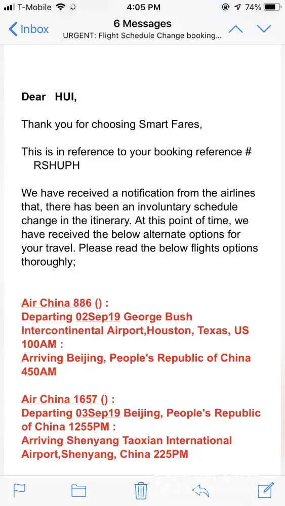 (Confirmation of your Flight Change 4M9Z97)