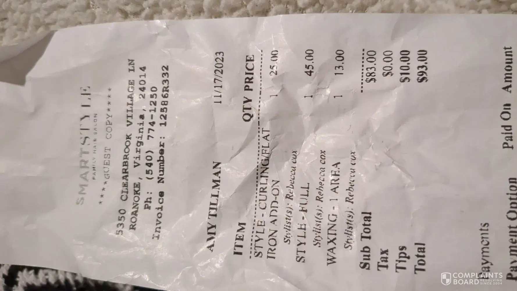 The complaint is the 2 beauticians at Smartstyles in Blf.Va. they ruined my cut was suppose to be vertical bob and it isn't even a bob now .You need to fire them and get some there that know what doing if you can't then I will post for people not to get haircut there.I will ruin that one place.It happened on Oct.3,2023 on that evening time .They did not give me a receipt she didn't.