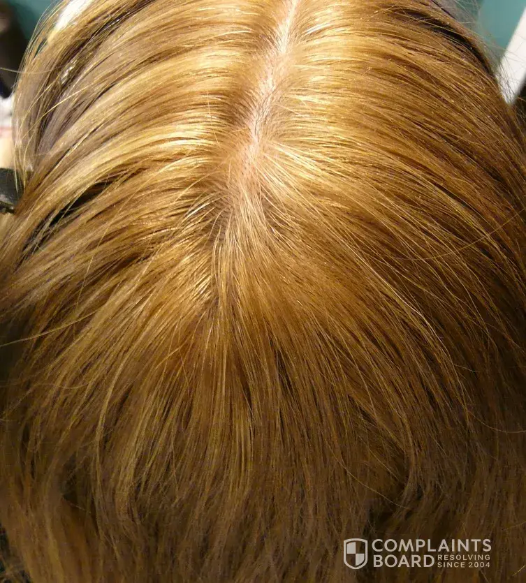 I go home and show my husband who wondered what they had done other than give me an orange highlighted bright pink scalp? We took pictures of it. I washed my hair (since it was sticky) and put some conditioner on and slept with a bag of frozen peas on my head to stop the burning. While the pinkness of my scalp subsided some, the searing hot lava burning sensation did not and I visited the local ER in the morning for a large dose of steroids and was told to come back if it didn't subside. I went back to the salon and asked if the manager would come and rectify this terrible situation immediately. I did not yell, I did not call names, I was obviously upset and on the verge of breaking down into tears after being in pain for the last 20 hours and being told "call the 1-800 line and you will get a refund we can't do anything for you". I ask for some treatment--ANYTHING--to stop this burning. Nothing. My husband calls them and was told that his wife was "nasty" to them. He was disgusted and demanded a full refund of we'd call an injury attorney--his wife had every right to be UPSET after just returning from a trip to the ER! I did receive a refund after he called them but I had to go home and apply my own aloe vera gel. It has been 25 hours and my scalp is in searing pain. I have no rash, no sign of an allergic reaction (as one of the unhelpful stylists tried to imply and even suggested it was "normal" to apply bleach directly to the scalp!) but I do have obvious patches of my scalp which have been processed (bright orange blond) and patches of hair where the foils bled under leaving patches of orange brassy chunks. NO decent stylist would EVER suggest that bleach for foils should EVER be applied directly to the scalp. Even on home hair dye kits it states "DO NOT APPLY DIRECTLY TO THE SCALP"! No kidding?--Do you think it might BURN? Hmmm...