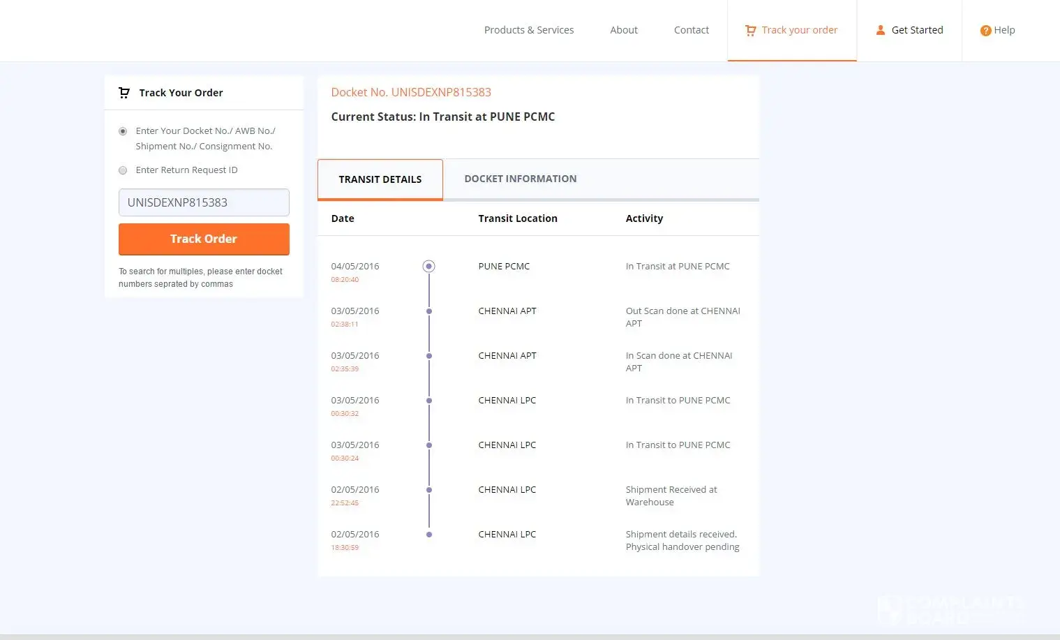 Raised complaint with their courier partner GOJAVAS complaint number 851075 on AWB No. UNISDEXNP815383n on 7 may but they will also not able to track the order.