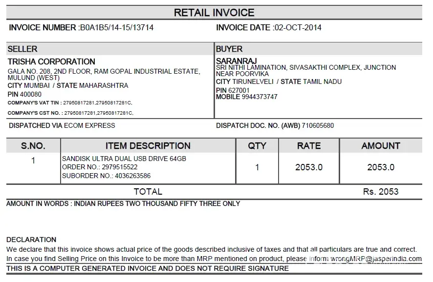 i placed an order in snapdeal.com (64gp sandisk pen drive) as COD i received the defected product then return the product for replacement of new one. but the didn't sent me the product instead of they cancelled the product without any prior communication.