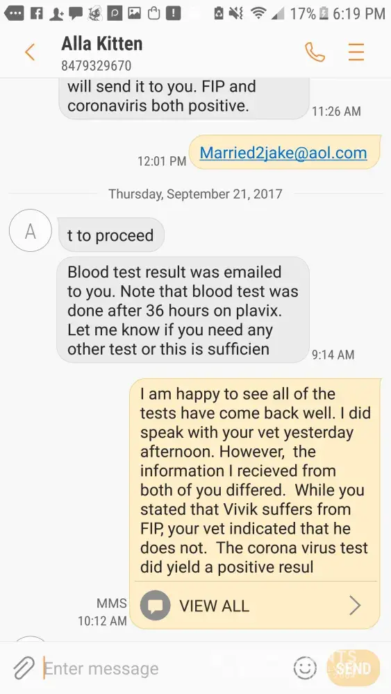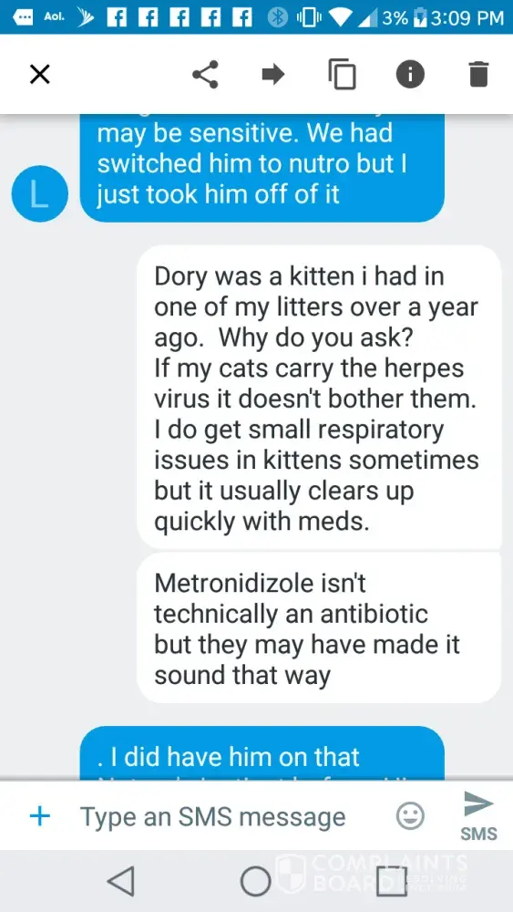 You have still failed to answer any of the questions I asked about testing and provide any kind of proof to your claims...which leads me to believe you didn’t have your cat tested for FVR and your just slinging around complaints based on your opinion...not facts. If I’m wrong then by all means, please post proof of your cat having an illness that is covered under the contract you signed when purchasing. No consumer is just going to take your word for it..especially when you clearly are not the brightest bulb on tree to begin with...you knowingly purchased a kitten that you said was “sick” and then threw a giant fit because you purchased a sick kitten. 🤷ðŸ¼â™€ï¸
