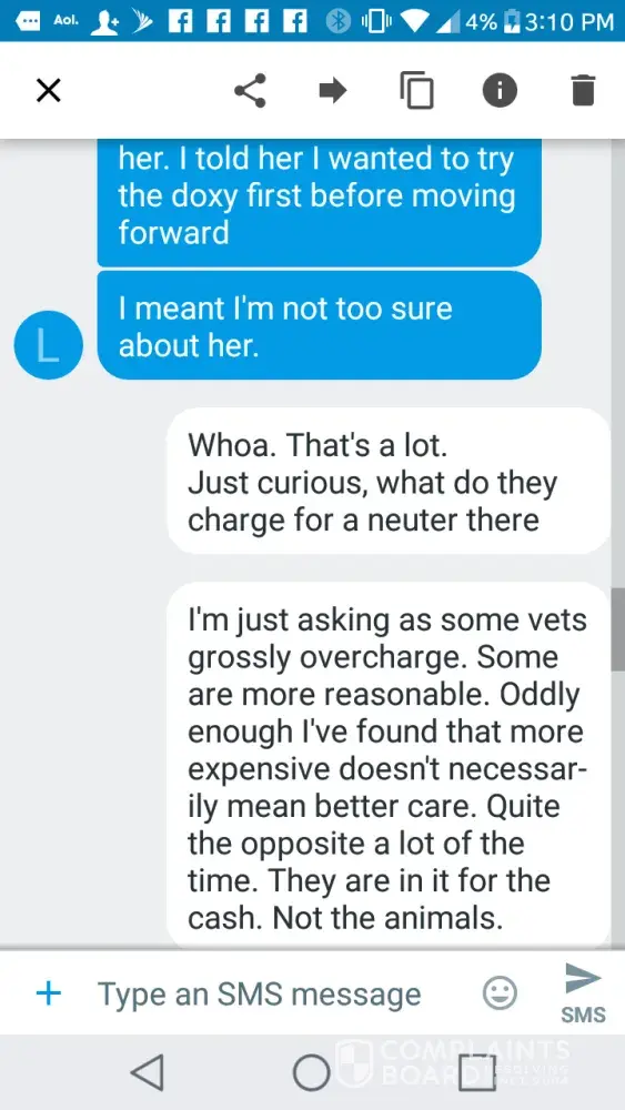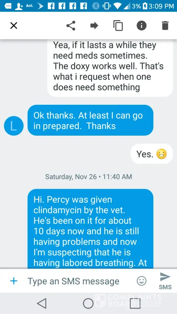I would suggest they also could have been owners with very valid claims against Snowy Hollow. However, when they learned of Anastasia's threats, they decided to exit the thread. Who needs this abuse? Since then, I have heard from two Snowy Hollow owners with sick kittens who do not want to go public on Yelp or on this board, perhaps for that very reason.