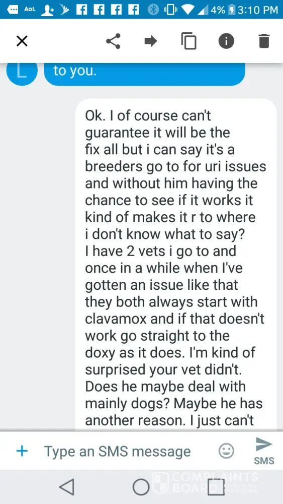And to totally absolve a breeder from any responsibility is ridiculous. I did take responsibility for my part. I take care of my cat and I dealt with it. I'm filing a complaint to warn future customers. That's me taking responsibility.