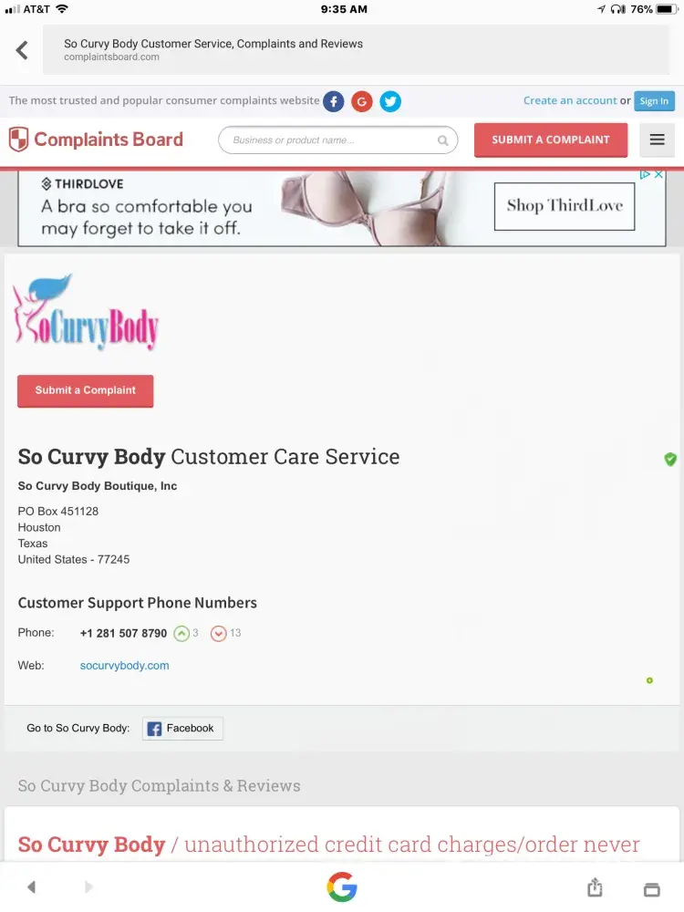 So Curvy Body’s earns a 1.0-star rating from 0 reviews and 23 complaints, showing that the majority of customers are dissatisfied with their purchases.