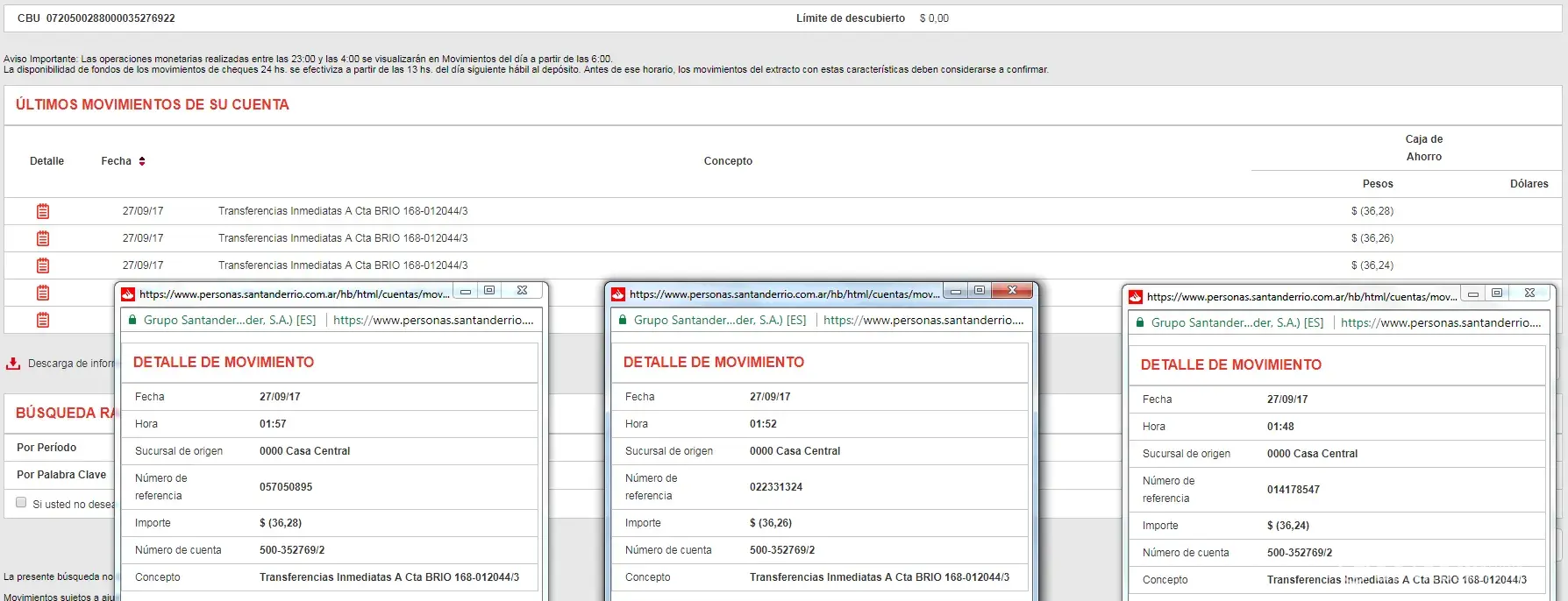 Attaching the Bank Account details that they wanted me to send the money and my Home Banking information about the transfers.