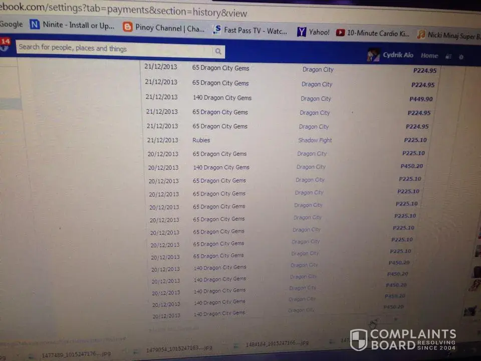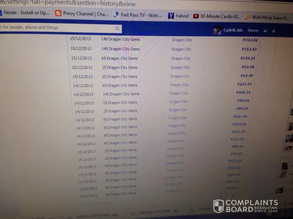 my 8 year old son has been playing dragon city for a long time. there was no in app purchases made before. then on 30th of november he asked me if i can buy him some dragon city gems which i agreed using my credit card for that one time only and it costs me more or less 500 philippines peso my son is in the philippines that's roughly $10 more or less. i entered my credit card credentials i did the purchase myself. without my knowledge my 8 year old son without my knowledge has been purchasing dragon city gems ever since without telling me, which i think is fraudulent in the part of the administrator of this game they should have a code or need to enter the a pin for my credit card before they approve the purchase. i almost fainted when i received my bank statement when i saw i need to pay more or less $2000. $2000 to pay for a game is downright outrageous i feel i've been robbed. i hope you will look at my complaint and advice me what are the steps i can do so that they will refund my money back. i already sent a complaint to facebook but they didnot email me back. here's my email alo.[protected]@yahoo.com if you can take notice at my case please send me an email on the steps that i could take so that i can have my hard earned money back. thank you...
