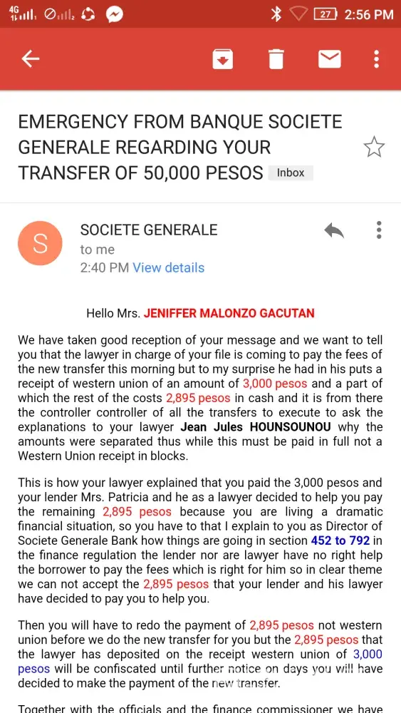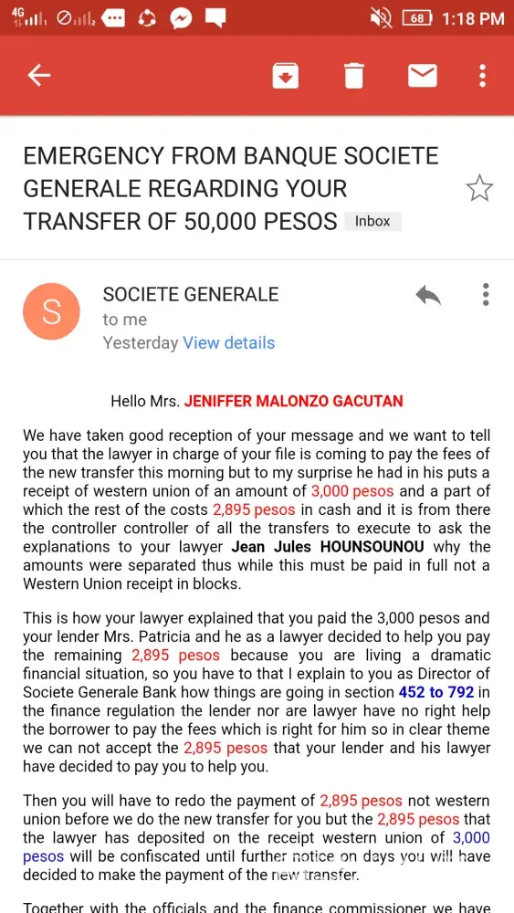 I hope u will help ..I'm from Philippines and I have scam by the person use this bank I will send the contract, the emails from the bank and the lenders name ...they get 14000php to me and I want to gve back that to me ...