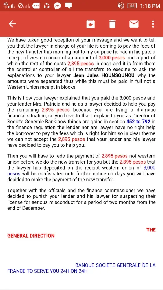 Note that this legal chamber cannot do anything without the confirmation of the required charges and societe generale bank plc shall transfer your winning fund to your account as soon as the fund release order is secure and present to them.