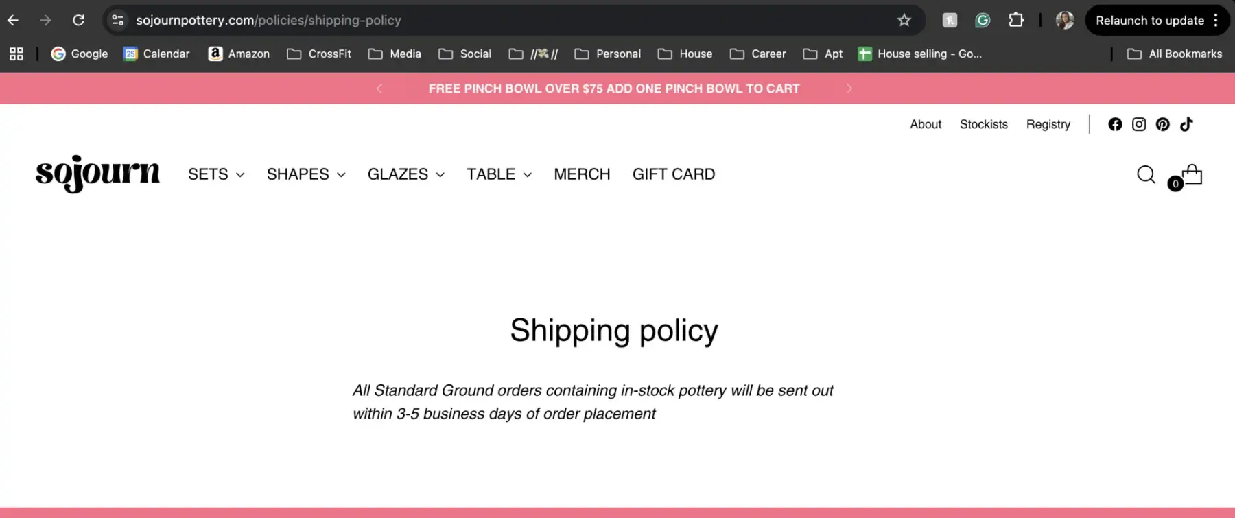 Sojourn Pottery social media