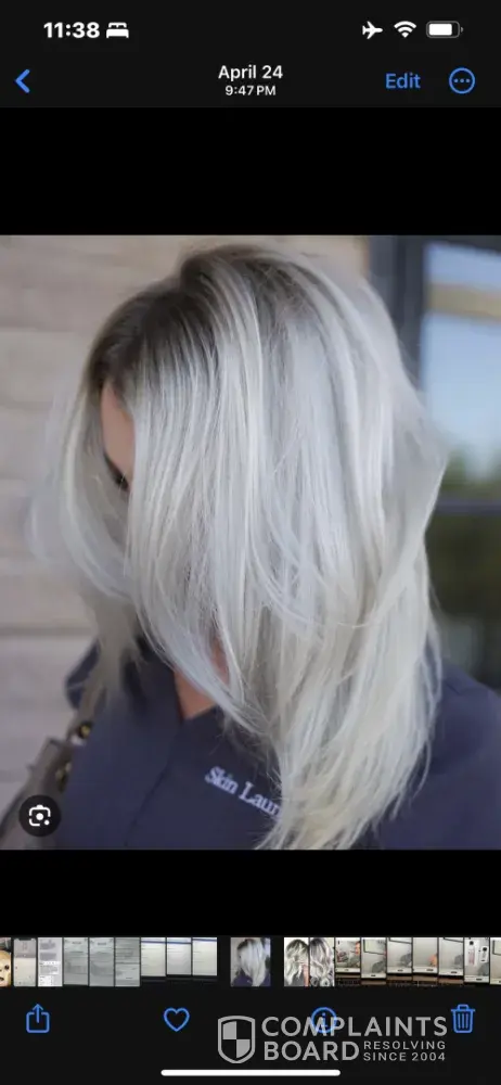 I brought a picture in. I’m new to town from Las Vegas. She assured me that she could do it. My hair needed up yellow. Came back in she made it even worse. I said something immediately, she told me it would begin to wash out (the yellow). It’s been over a week and it’s only getting worse. She charged me $180. I really want to send pictures. This i...