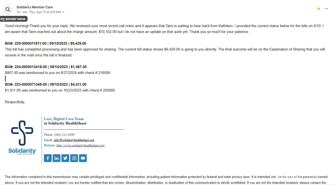 We worked with Solidarity under the premise that our calls would be answered in a timely matter, and bills would be worked with to be repriced, and shared, and paid after our Annual Unshared Amount. We have attempted NUMEROUS email and phone conversations, NUMEROUS times the doctors offices have tried to contact Solidarity to no answer, or no help. All of our bills have been turned over to collection, as my husband also lost his job this past year. We are struggling to make ends meet as it is, and trying to make payment arrangements with the collection agencies. Solidarity has not held up their end of the bargain. We are saddened and disheartened that a Christian organization would treat its members with such dishonesty and ill regard.