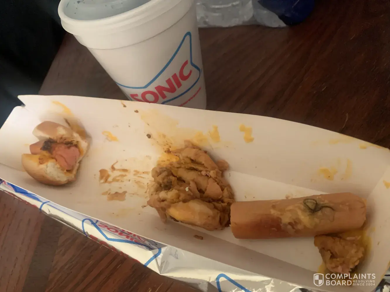 Took my daughter to the sonic on Highway 160 a day after Christmas and we had hair a clump of hair in our food I tried contacting the manager he told me to contact you guys I've tried twice to have you guys get back in touch with me and it has not happened so my next phone call do you guys will be from a lawyer. The pictures that I have sent shows you that we had consumed most of the foot-long hotdog when I found the hair in my food and I do not know what my 13-year-old daughter may have not seen but consumed