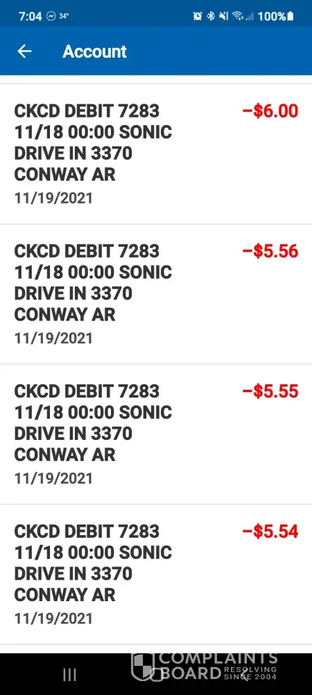 I was ordering my food on the sonic app and when I got to the pay part it kept popping up a unexpected error occurred so I hit ok and tried again. Finally after trying 4 times it went through. When I got on my bank account to check it it showed sonic charged me for all 4 tries. I just want my money back for 3 of those 4 tries. I have added a picture of my account.