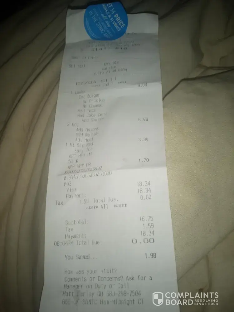 Hi! Good'Morning I went to sonic this morning for breakfast I ordered a number 17 which is French toast sticks instead of the employees telling me y'all are out they gave me toasted white bread and syrup. I’m not trying to be any trouble but I paid for something I didn’t receive. I always get told not to use this sonic because of this reason right here...