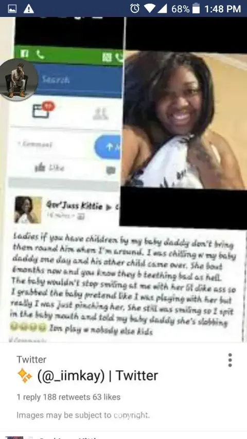 Employee by the name of Alise Humphreys (Aka) Kaylaa. She posted on Facebook under another Alias, Gor'juss Kittie, bragging about her abuse of another woman's infant. She then posted a photo of herself on the same account wearing her Sonic uniform, I know the logo. I used to work for Sonic my Husband still does. This woman is despicable and has no place in customer service.