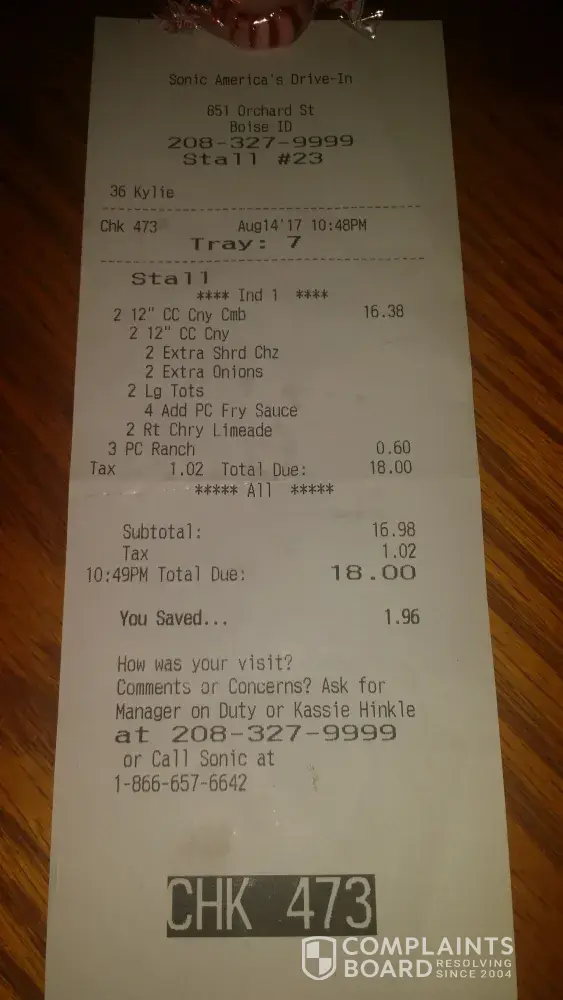 Sonic Drive-In Complaints Page 68 of 91