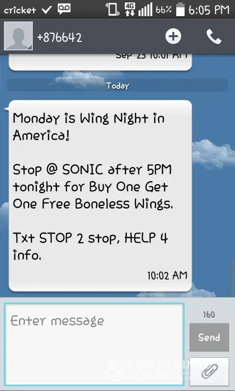 I received a text sayng it was national wing nice and was excited to go to my local sonic here in fort lupton Colorado where i was informed they where out of boneless wings i was very upset considering it was only 530pm and the sale started at 5pm i rarely go to my local sonic cause they are always messing up my order and making me wait 20 minutes for food after this experience i will not go there again