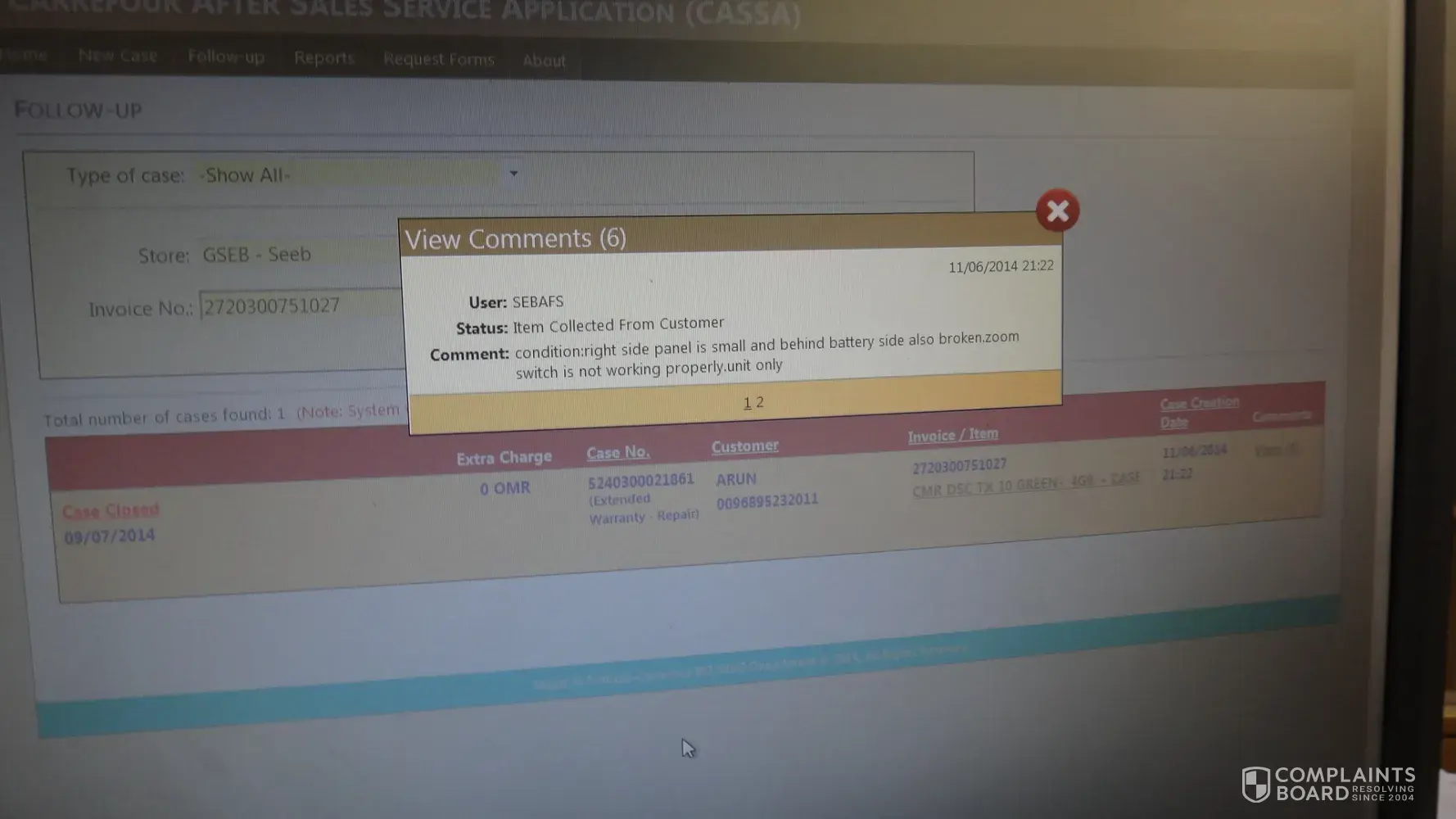 Again the complaint came and submitted to carrefour muscat city center as the warranty expired and it was in extended warranty and they replaced under extended warranty.