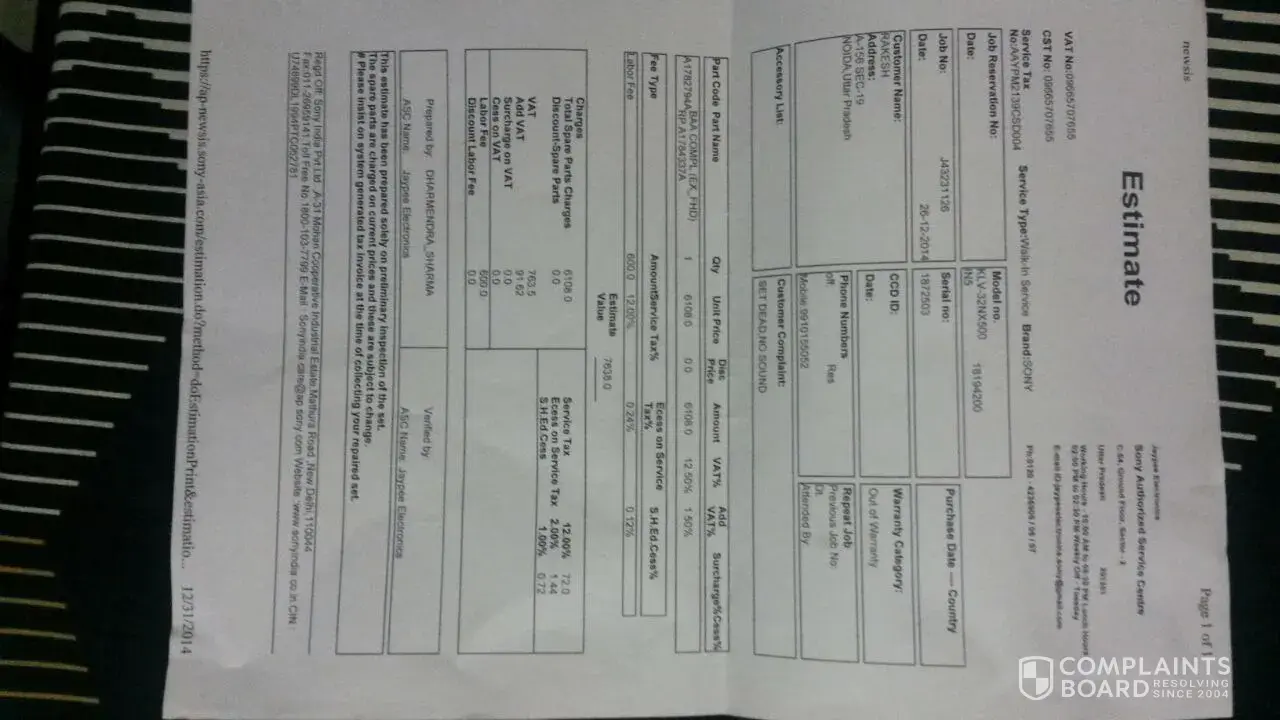 This is to bring to your kind notice that I have purchased ‘BRAVIA LCD’ 32’ Inches Model No. 32BX350, Serial No. 3356296 on dated 01.03.2013. Approximately 2.5 years have been passed and there was no complaint against the above mentioned product. But some days back my BRAVIA LCD stopped working and the visual was totally lost. I called the customer care and my complain was registered wide complaint no. [protected] on dated 16.02.2016 and on the same day company representative visited my place and checked it. I was informed by him that ‘Panel’ of my ‘BRAVIA LCD’ is not working and it has to be change and to purchase the new panel. After investigating, I found that the Panel is of Rs. 15, 000/- inclusive of all taxes.