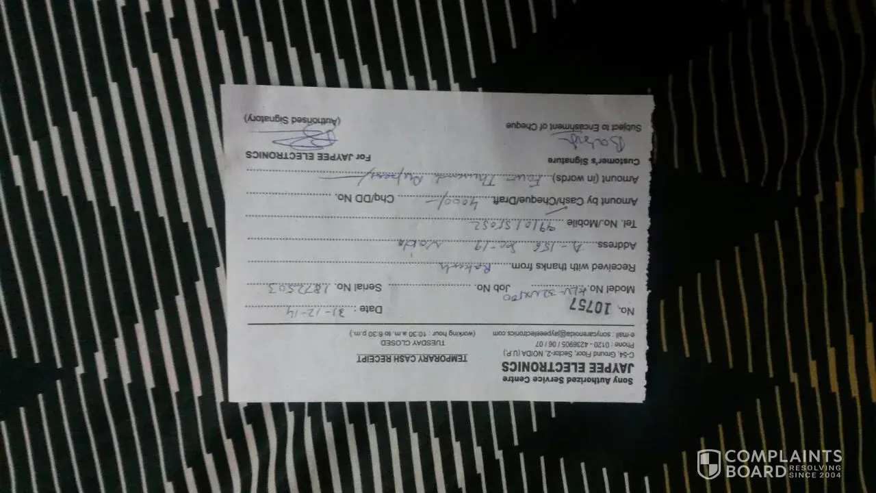 I am sure I will not receive any feedback from Sony guys as well but this is my last try because I am exhausted by running behind Retail Outlet..