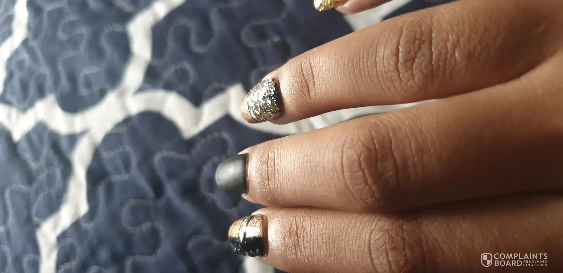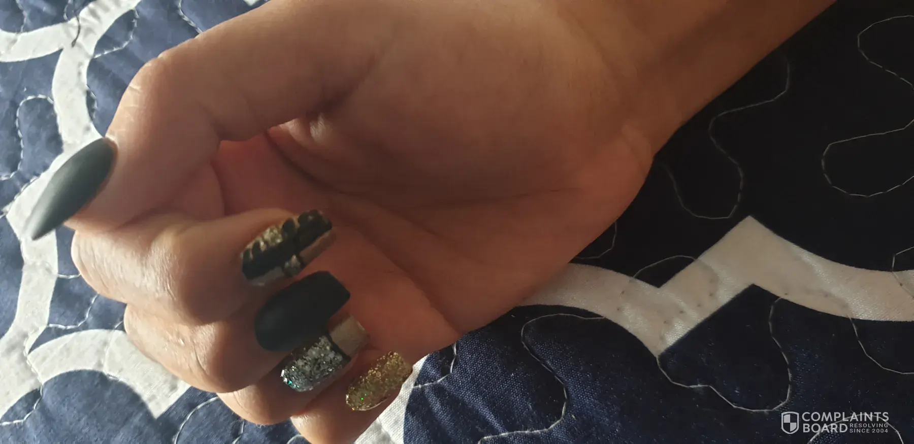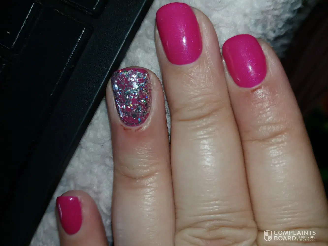 Not to mention the broken nail after I told her after cutting the nails about the chip and she said no its not broken, she covered it with nail polish, got home as I took a bath that nail kept on hooking my face cloth and that chip is a broken nail and more ugly