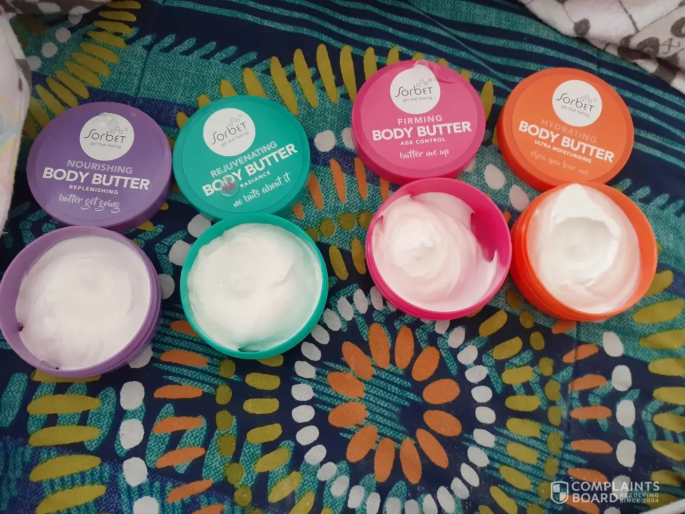 I purchased 4 50ml tubs of the sorbet body butter at Clicks MetLife Plaza, to my dismay the tubs were half filled, if not empty. Only one was filled as it should have been.I regularly buy the sorbet products shampoo, hair treatment, leave in conditioner etc. This is a total rip off and totally unacceptable.I am so disappointed.Sorbet you can do better than this.