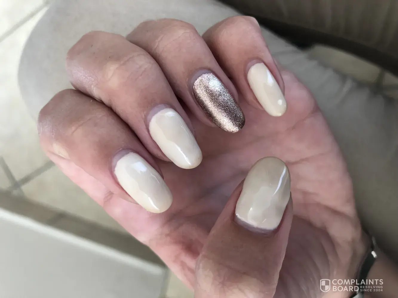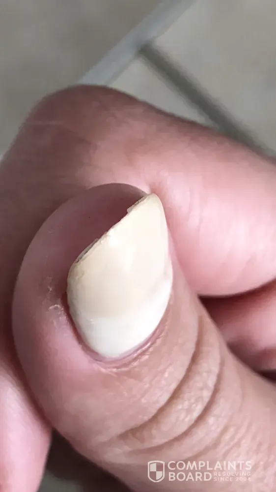 I had my nails done on the 21st of April 2018 and in a weeks time the nails discolored, chiped on the edges and the tips they applied broke away from the product. I am also upset that the person who did my nails rushed it leaving my nail unneat and lumpy.