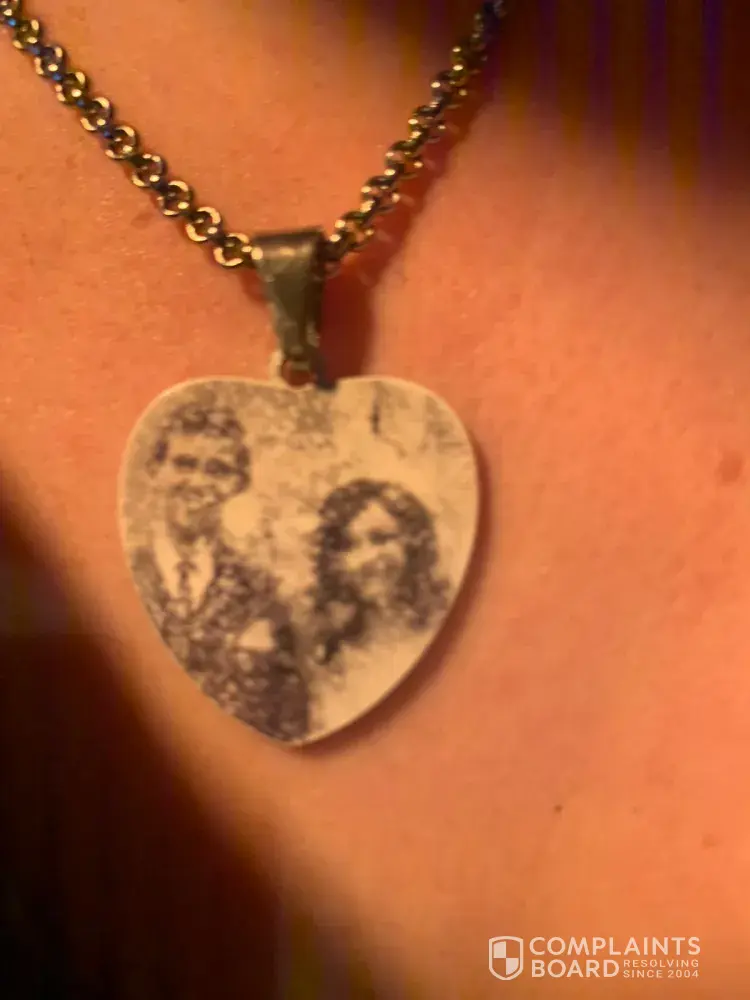 The picture on the necklace I ordered Is all smudged ... I brought this item as a gift for someone losing there loved ones and the picture has smudged. I was just going to return it but I would like this to be resolved before hand. I have used your company a few times and have never experienced a problem like this and normally highly recommend your services to.. I am hoping it's a one off problem and gets resolved ASAP! Please find the attached picture of the smudged picture.