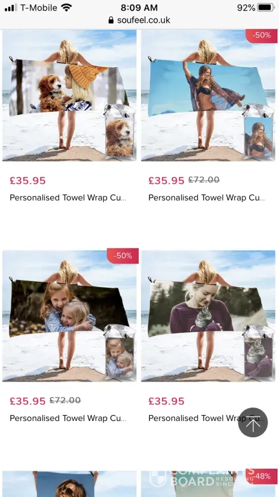 My second response: EVERY SINGLE towel on your website shows the image filling the ENTIRE towel.
