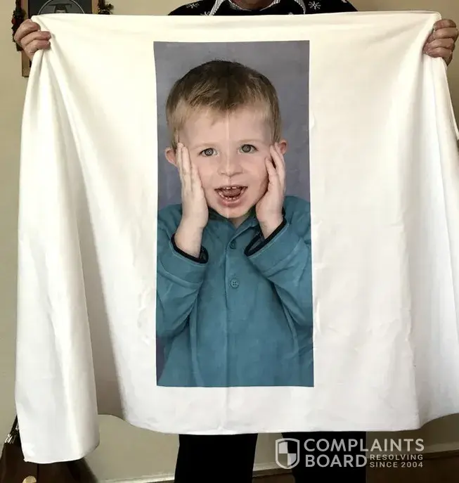 Having seen the photo-upload towels on your website, I decided to purchase one for my father. EVERY SINGLE image on your website, depicting what the towel's final-outcome would look like, has the image filling the ENTIRE TOWEL (see attached screen shots). My father's towel arrived with a shrunken, partial photo in the centre of a plain white towel.