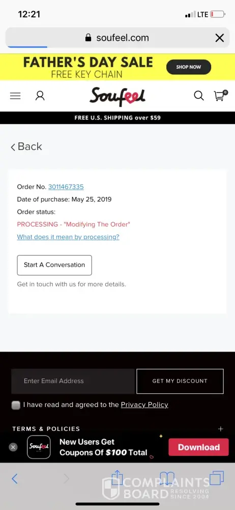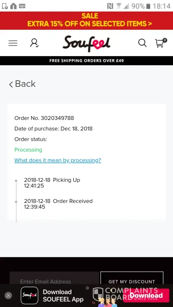 After a week and my tracking order still showing as ‘processing', I decided to try to contact Soufeel to see where my order was and why it hadn't gotten any further in its process.
