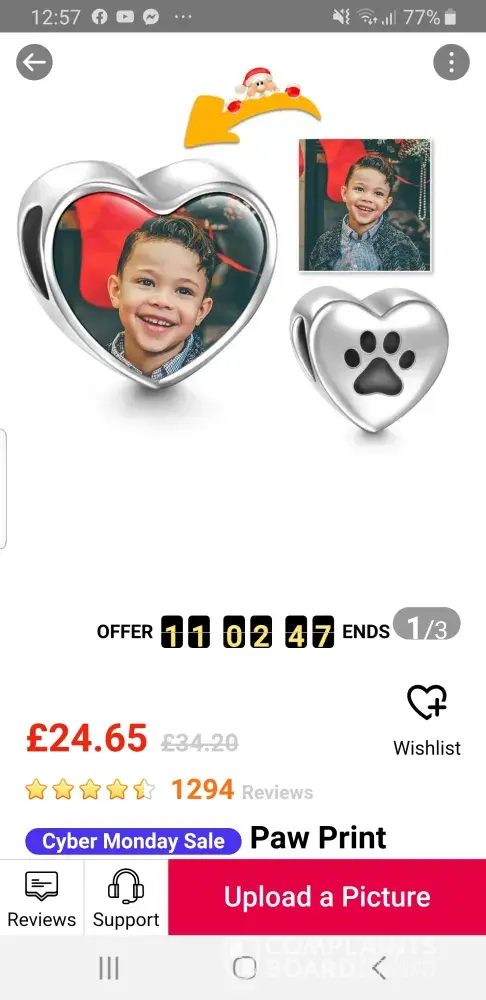 I ordered a bracelet with a picture of my late dad on it for my mum for Christmas, it arrived today and when I opened it there was no pic, it was like black on one side, when I placed the order u could see the picture of my dads face, it was fine when I place the order, I wouldn't of ordered it if it turned out the way it did, u can't see anything on bracelet, it was alot of money, I've message as soon as it arrived and not heard anything thing back, my dad died suddenly and mum was married to him for 40yrs and there looking into his death so you can imagine the disappointment and upset when I saw it.