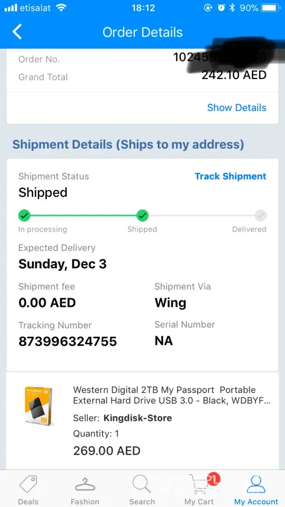 external hard drive/ 3 weeks delayed / souq.com