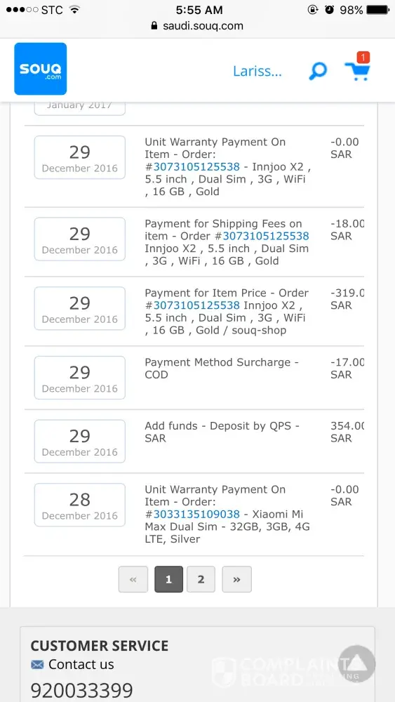 I avoided buying anything from them since, but when Amazon, which in my opinion is the best customer service company on the planet, purchased Souq.com, I though things would be different, and I tried my luck again with a couple of items, both of which were listed as fulfilled by Souq.com. Delivery date came, and I had nothing. I filed a complaint, but got no answer after 24 hours as they said I would. I called, and no use, as everyone experienced, they tell you they will call back, but never do.
