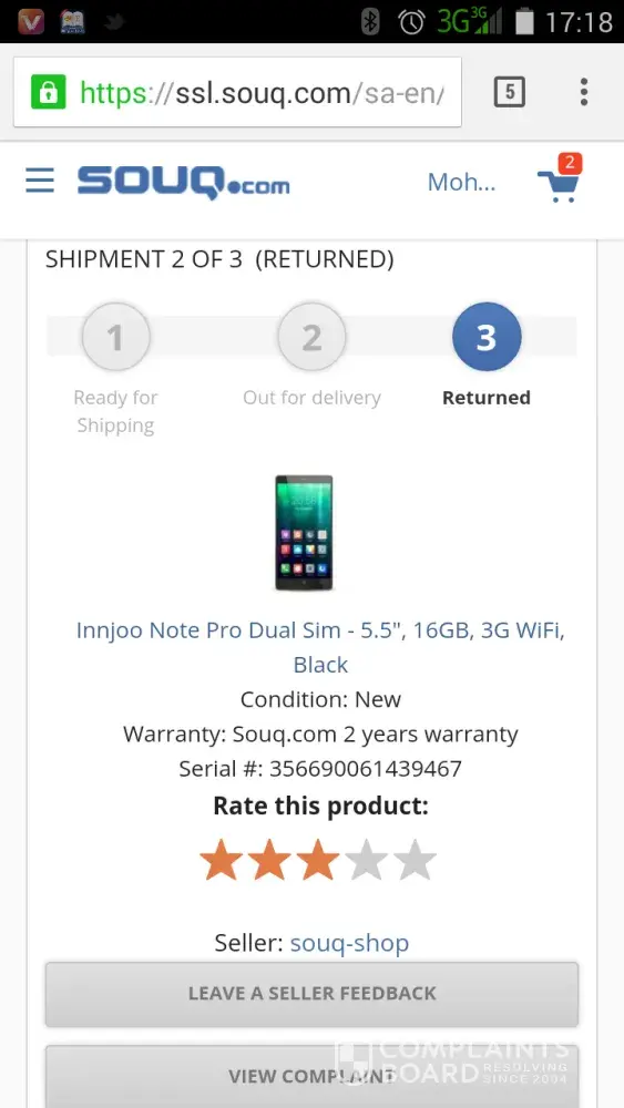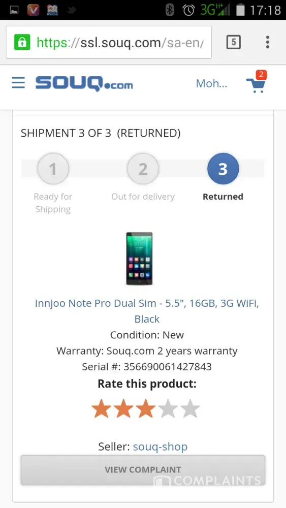Order to received innjoo note pro device 2pcs open and check one device not working other one condition not new (condition not brand already used add id and download load all application and available 150 message) complaint and return 2device same date (delivery to nex day) now return device one amount release my souq account other one no any results attach image delivery time mobile condition