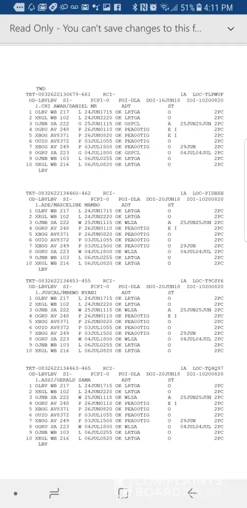 South African Airways / FlySAA.com complaints: history and resolution overview