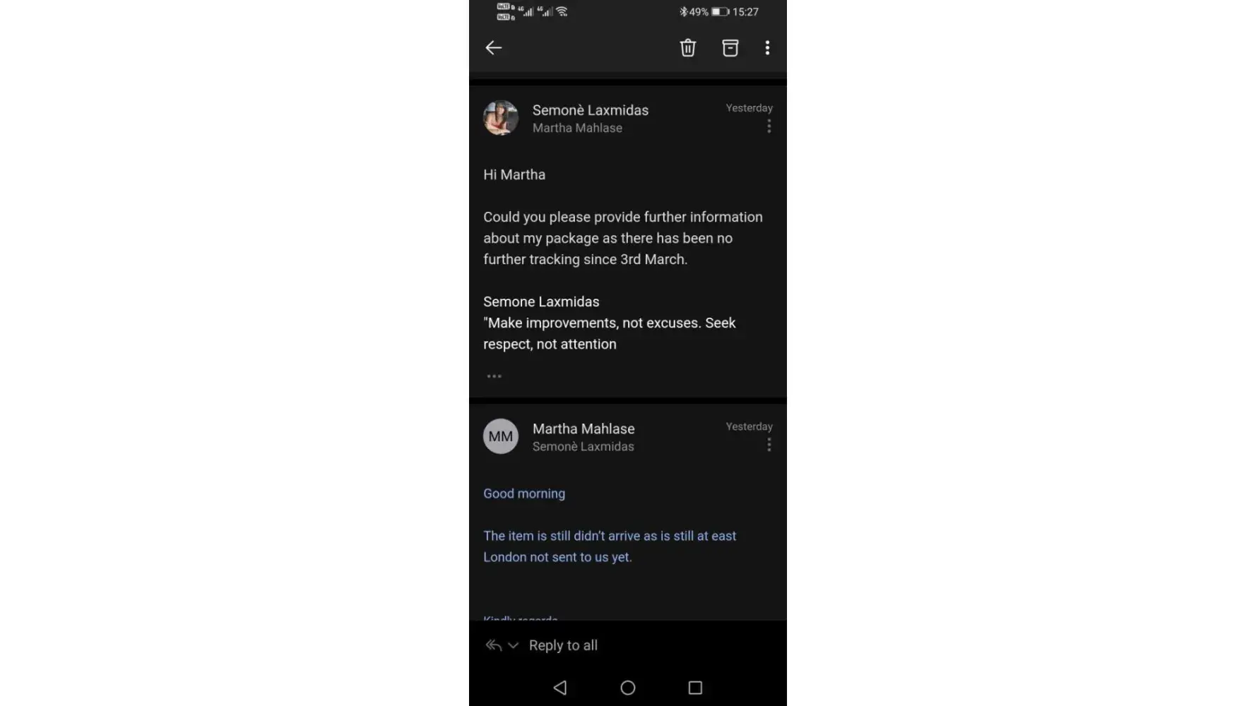 Desired outcome: I expect a reply and to have my parcel delivered.
